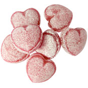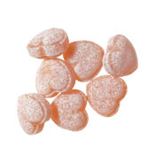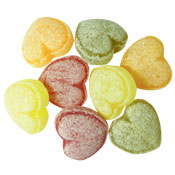 leckeren Fruchtbonbons in Herzform mit den Sorten Apfel, Zitrone, Orange, Kirsche, Cola, uvm.